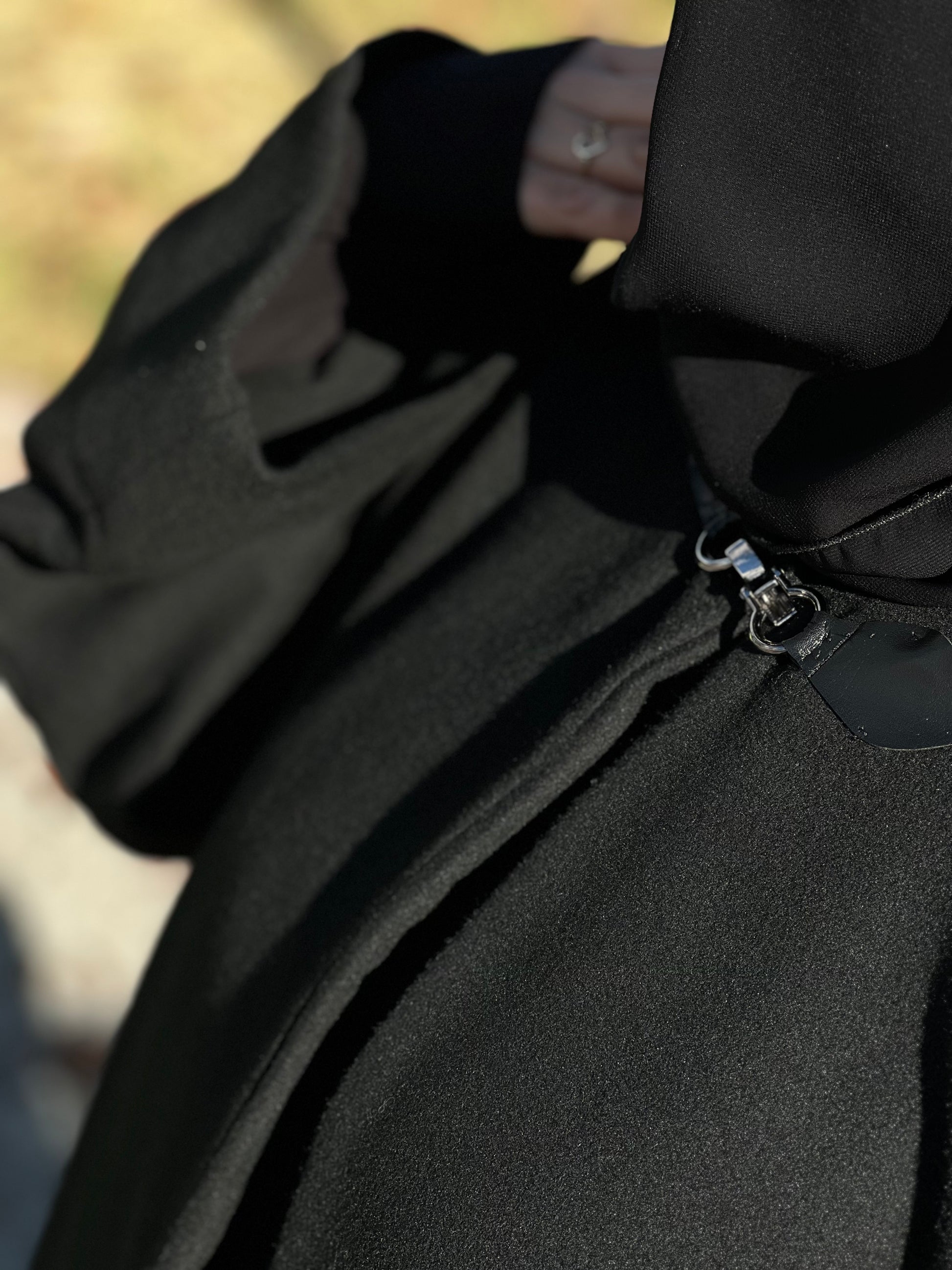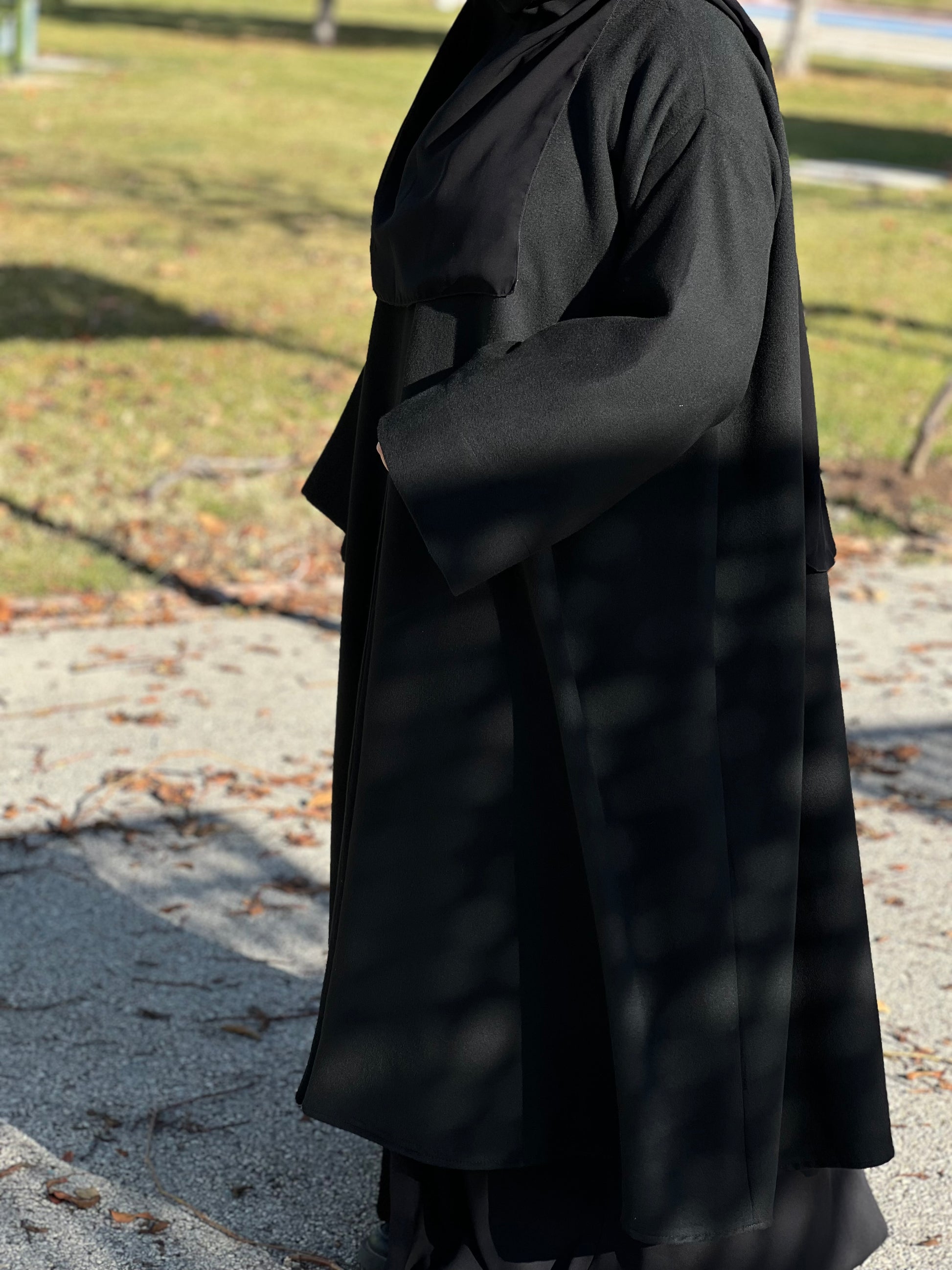 Optez pour notre caban extra long effet cape, une pièce pensée pour allier modestie, qualité et prestance.