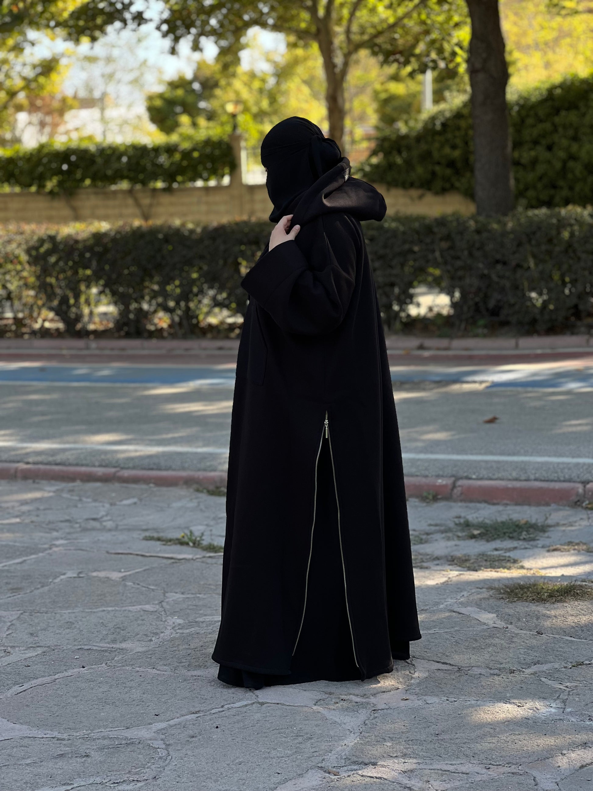 Deux zips latéraux : aisance pour marcher, s’asseoir, allaiter, superposer des pièces.